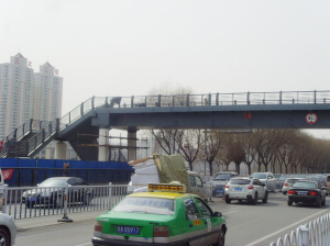 在此大背景下,盡快在交通密集路段修建過街天橋,成為廣大市民的普遍愿望。跨北濱河路天橋的建設,不但能夠緩解中山橋頭局部交通壓力,還能夠促進北濱河路恢復城市快速路的職能。該天橋投入使用后,黃河北最繁忙的人行道---中山橋頭人行道將被兩座仿古過街天橋取代,在增加人文景觀的同時,這里異常緊張的交通壓力也會得以有效緩解。