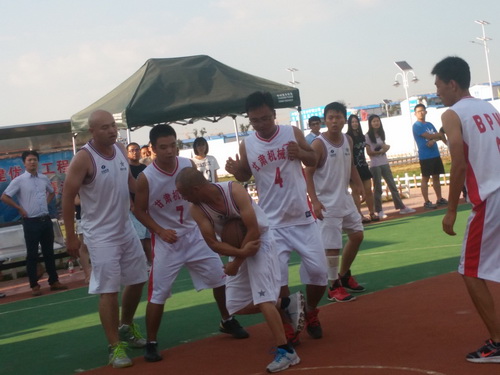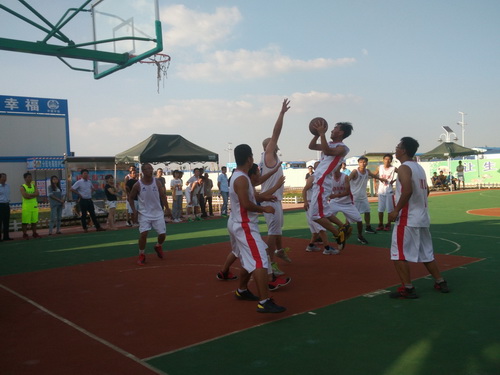 在此次的比賽中,參賽的單位有監理3標中企建發、1標中鐵十二局、4標四川場道、3標中國華西、5標上海路橋、8標中鐵航空港、10標中水十六局、6標甘肅機械化共8支籃球隊進行參賽,建設單位也派隊參加,進行友誼賽,我們跟兄弟單位中鐵航空港,上海路橋,中水十六局、四川場道一決高下,最后入圍四強,在決賽的比賽中,我們再次遇見實力強勁的中水十六局,雙方隊員在籃球比賽現場氣氛熱烈,隊員們積極進攻,嚴密防守,精彩的配合,巧妙的搶斷,不時的將比賽氣氛推向高潮。天氣雖然炎熱,但絲毫沒有影響隊員的熱情,盡管兩支球隊都是業余籃球愛好者,但他們在比賽中均表現出較好的團隊協作能力,一群年輕人激情飛揚,帶球、傳球、搶斷、上籃,賽場對抗激烈,隊員個個揮汗如雨,最后在我方隊員的努力拼搏下,以32:30的比分,贏得第一。